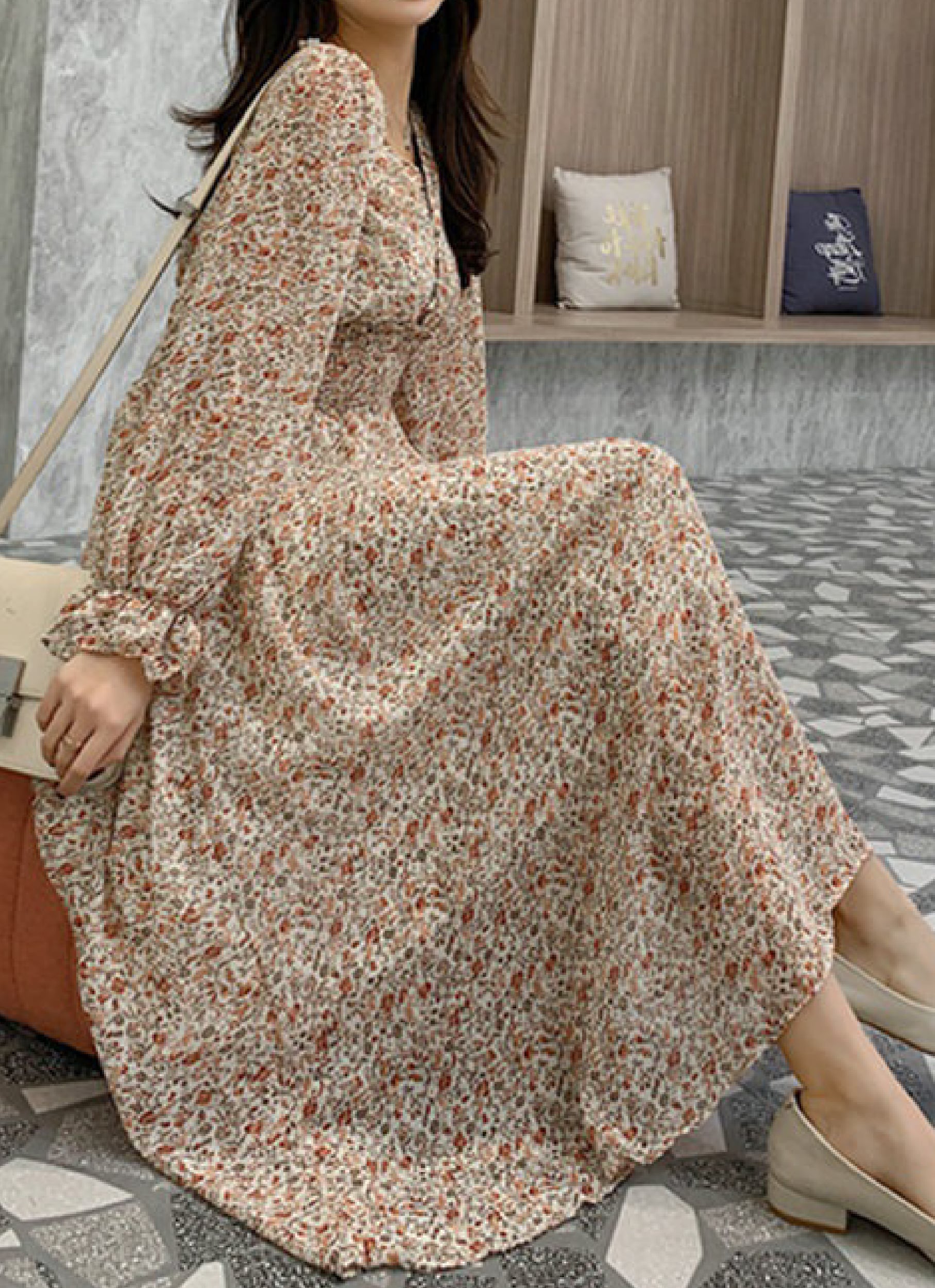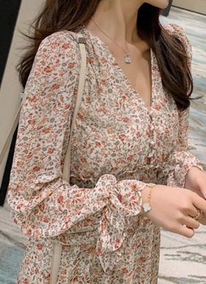 小花柄の韓国風ワンピースが新登場!Vネックでフレンチな印象を与えるデザインは、女性らしさを引き立てます。小花柄が可愛らしさを演出し、長袖なので春先から秋まで長く活躍してくれる一着です。軽やかな素材で着心地も快適。シンプルなデザインなので、アクセサリーや小物使いでコーディネートの幅が広がります。